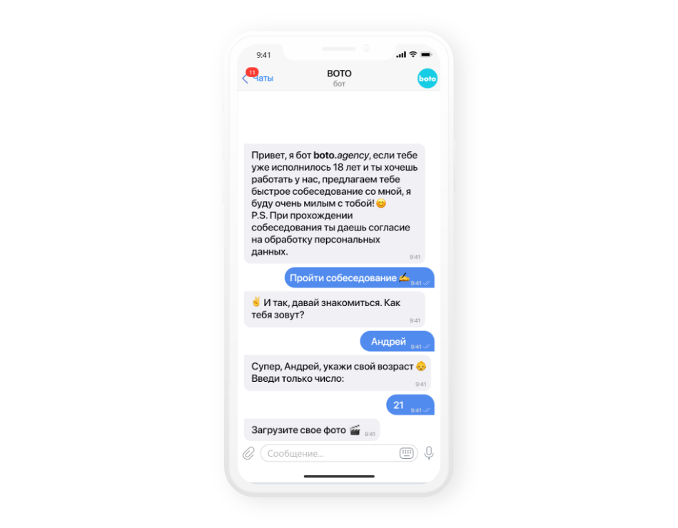 2. Client briefing. This is one of the most popular chatbot features. Its task is to collect your audience and key information about clients, so you can later use it for business purposes: sales, loyalty, support, mailings, etc.