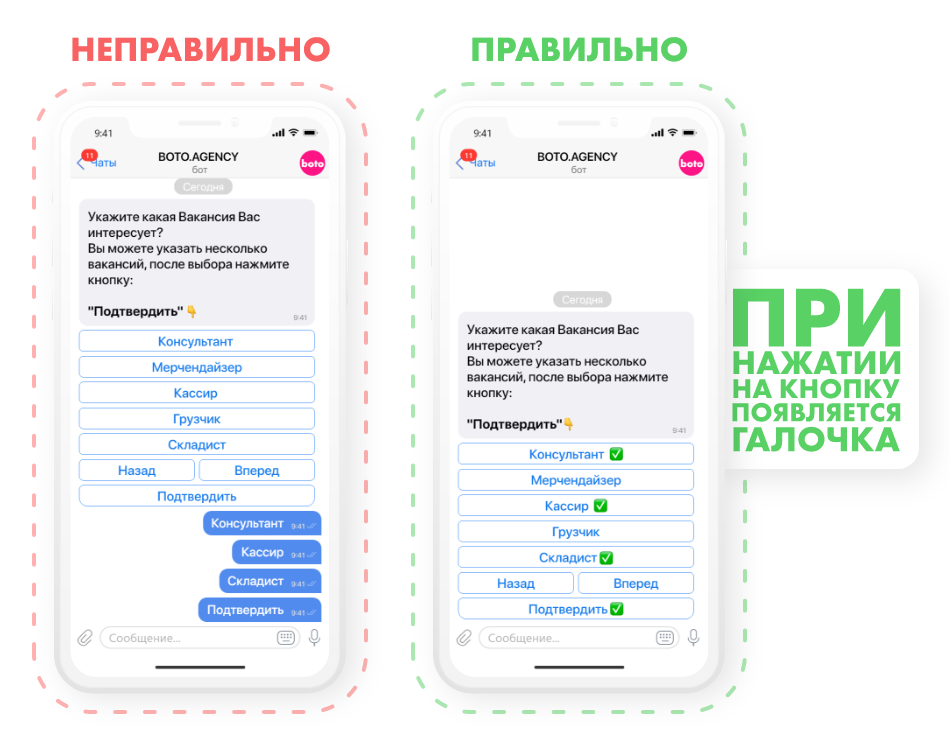 2. Copywriting. Your main strength in a chatbot is the text. It should be concise, grab attention from the first words, and hit the target clearly—whether it's a mailing, order processing, or a brief. I always recommend paying attention to: